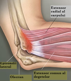 Epicondilita este o boala a insertiilor tendinoase la nivelul cotului, care poate afectata atat insertia tendoanelor extensoare pe fata laterala – cand poarta denumirea de epicondilita laterala a cotului (tennis elbow) sau insertia tendoanelor flexoare pe fata mediala a cotului – cand poarta denumirea de epicondilita laterala a cotului (golfer`s elbow).